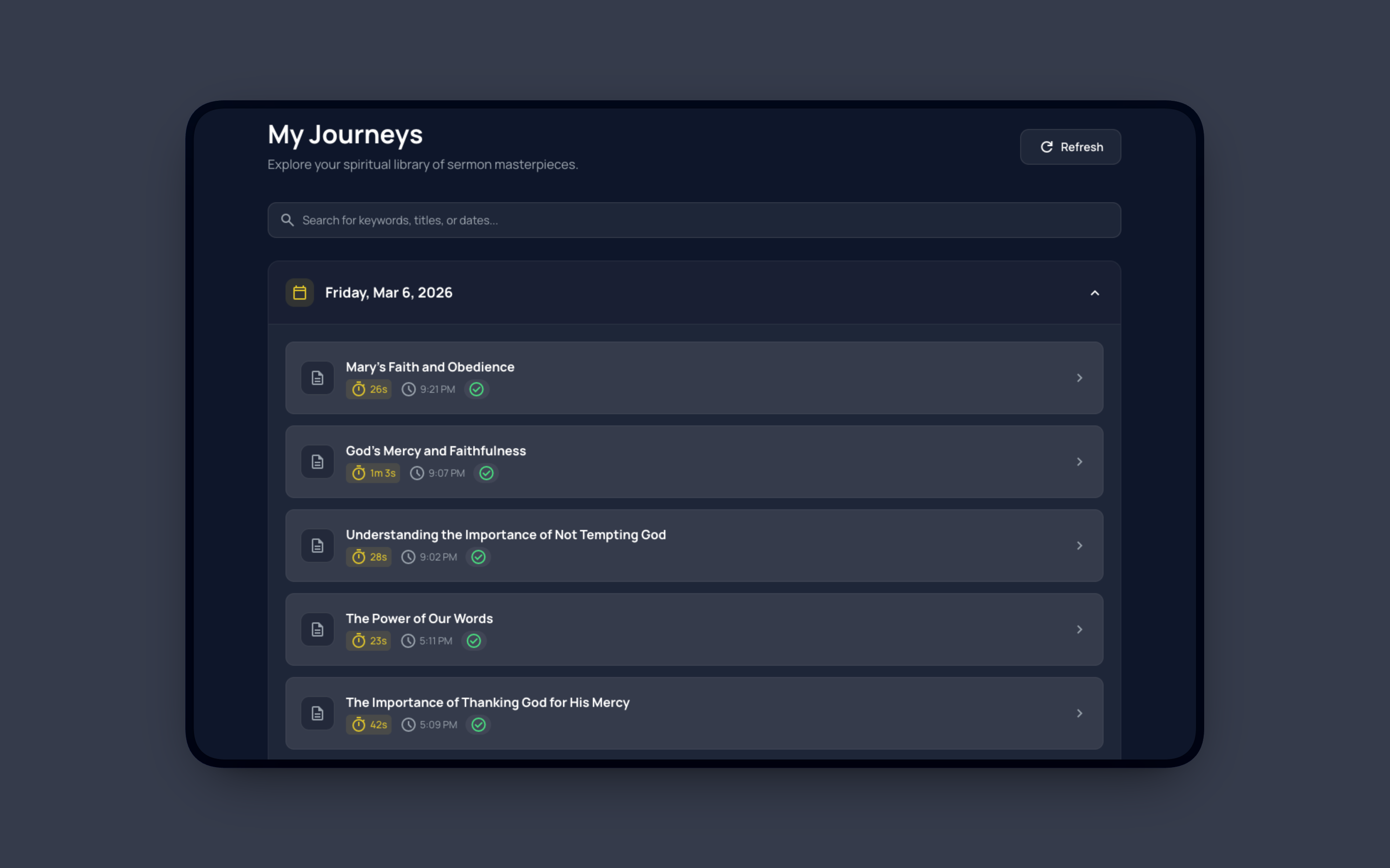 Discover past sermons by theme or keyword.